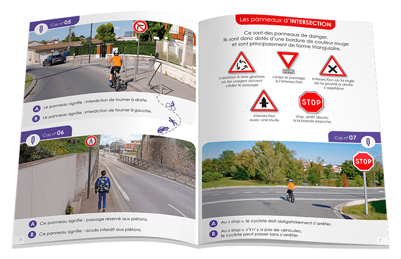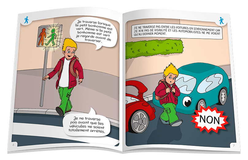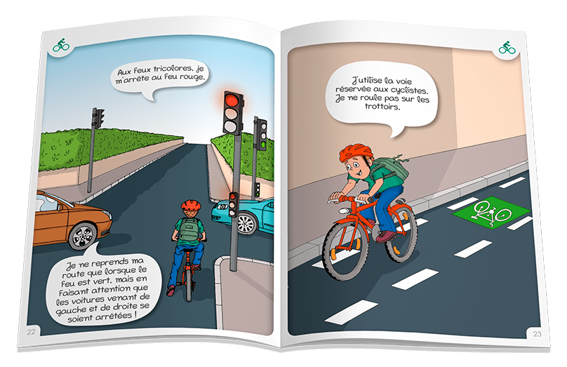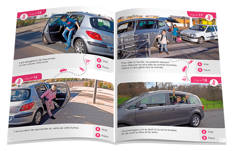 La formation dispensée en classe grâce aux séances en ligne peut être complétée par un livret* remis aux enfants. Ces livrets reprennent les notions abordées en classe pour chaque niveau scolaire, permettant aux élèves de revoir les règles de prudence tout au long de l’année et d’attirer l’attention des parents sur les questions de sécurité routière en les associant à l’enseignement suivi par leurs enfants.