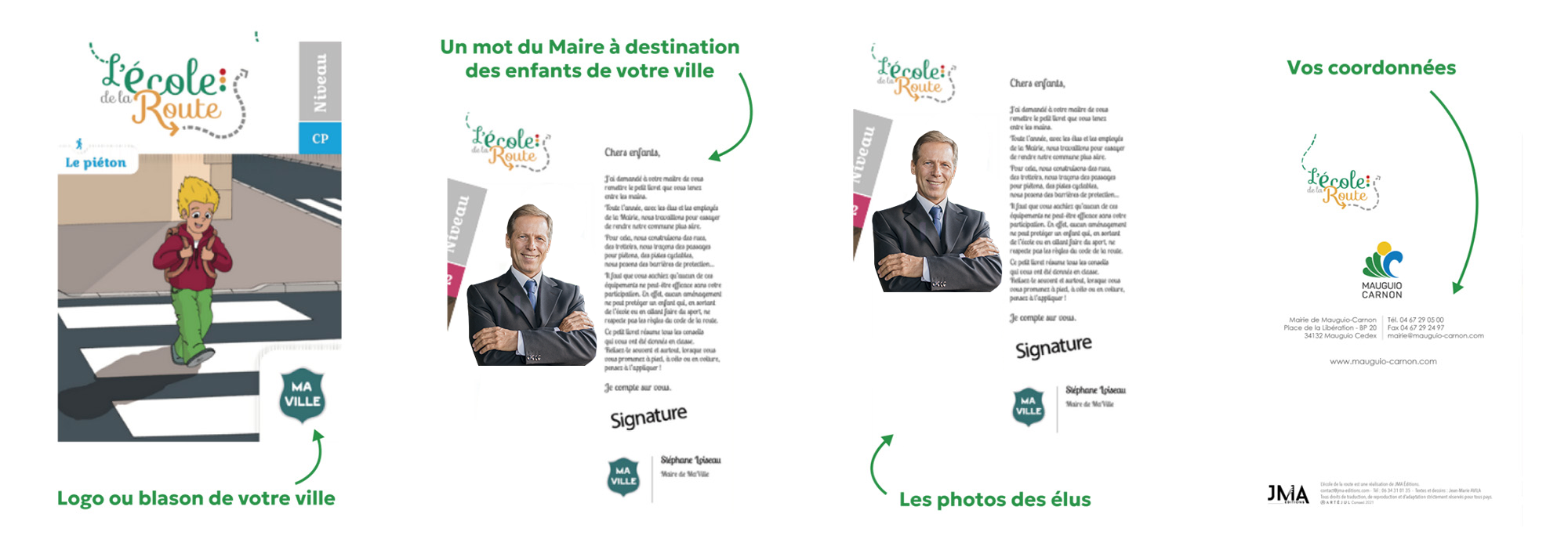 Cette formation peut être complétée par des livrets personnalisables aux couleurs de votre commune (logo, blason, mot du Maire et des élus avec photos, coordonnées de la Mairie, etc.).